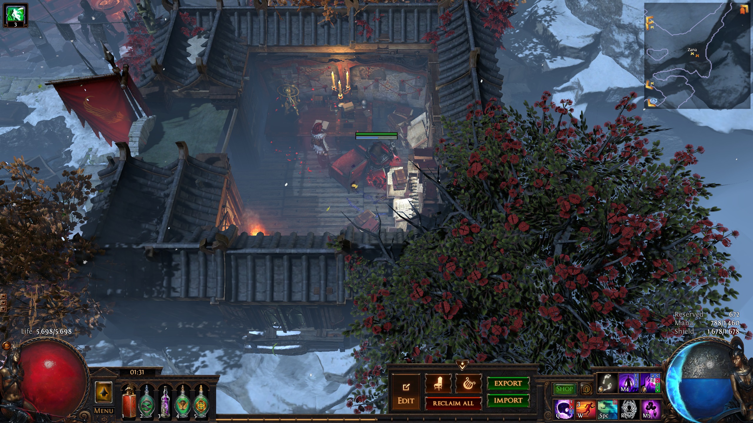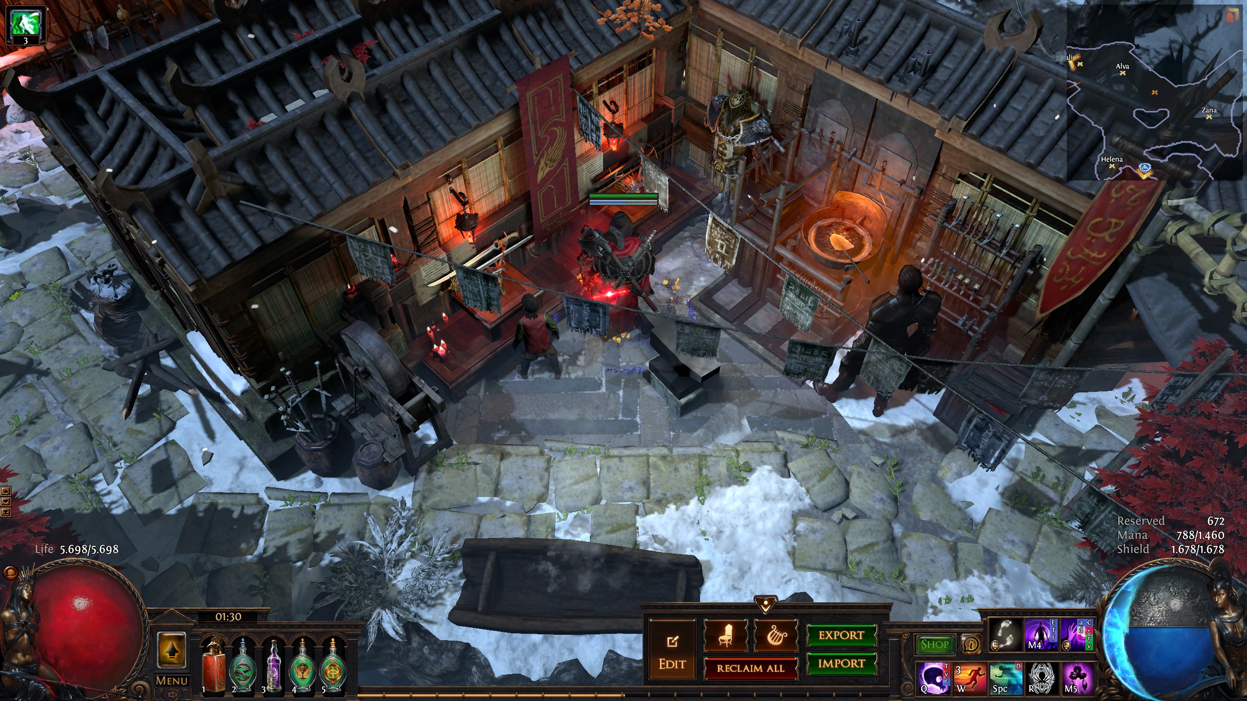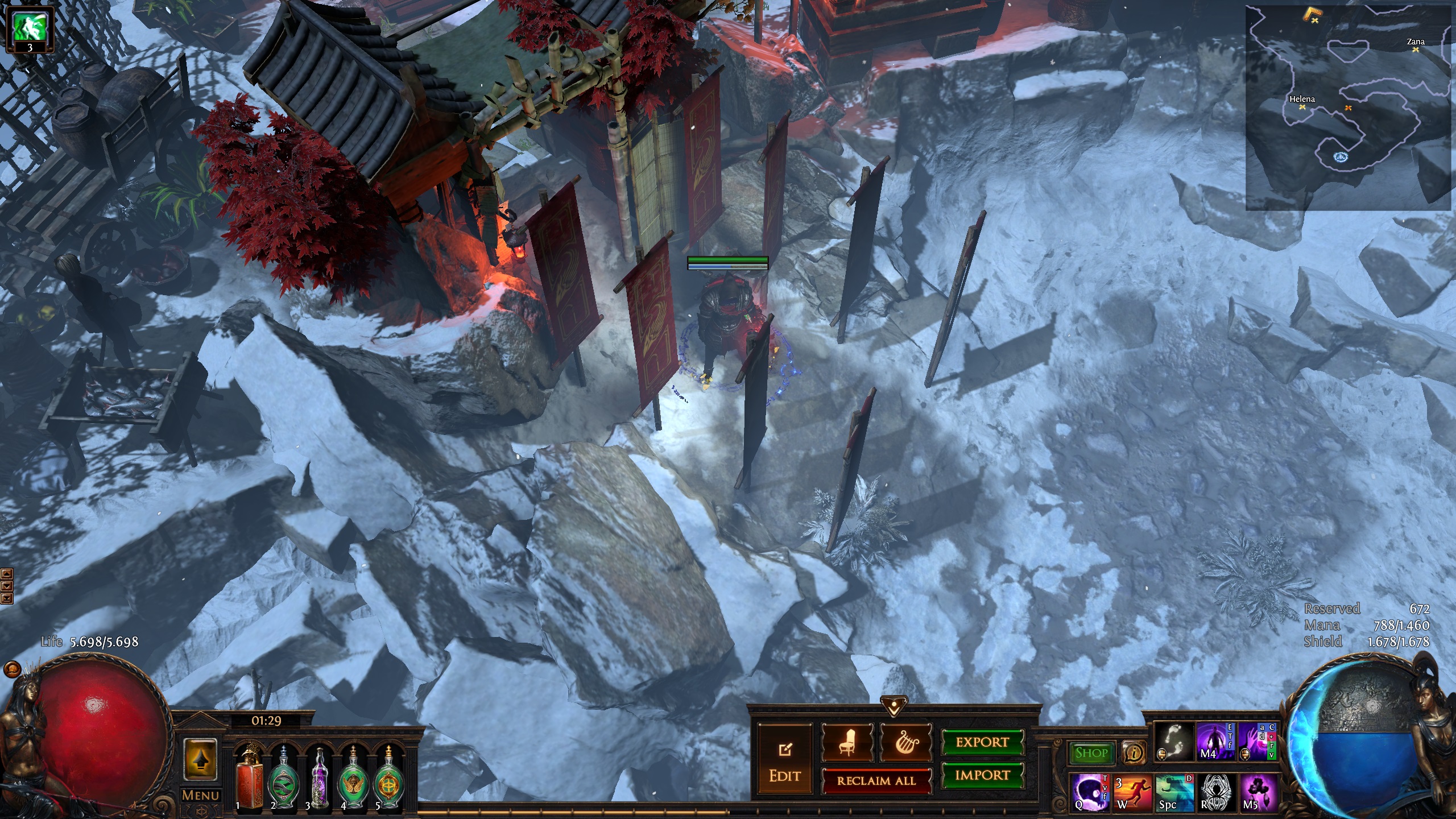 Hideout inspired by the secret mountain monastary of the Hashashin/League of Shadows from the Batman universe - Nanda Parbat. It has the hallucinogenic Hasha blue flowers from Batman Begins and the Lazarus pit from the Arrowverse. I used a couple of MTX like the Dragon portal and the mystic cave, but those can easily be replaced(the new Divine portal(which is free with the Twitch prime promotion)