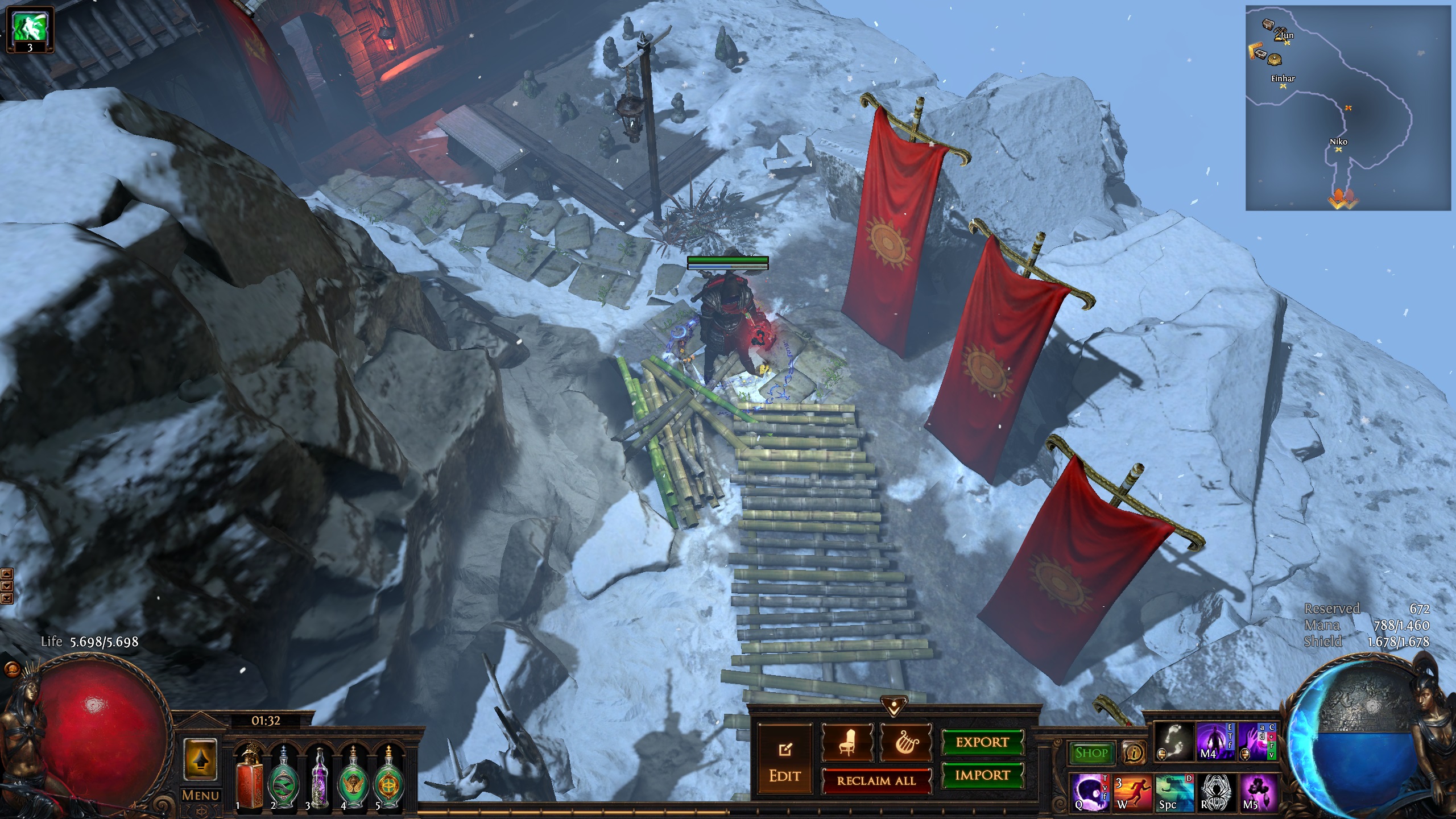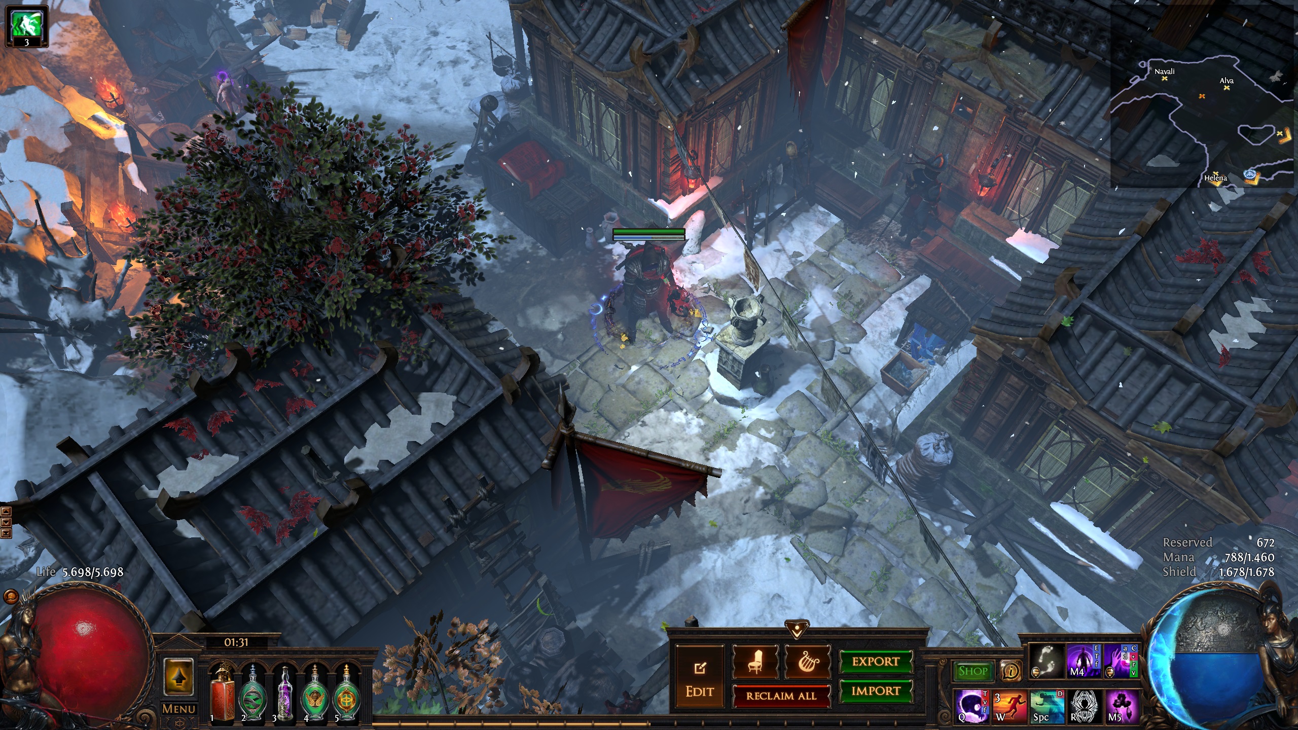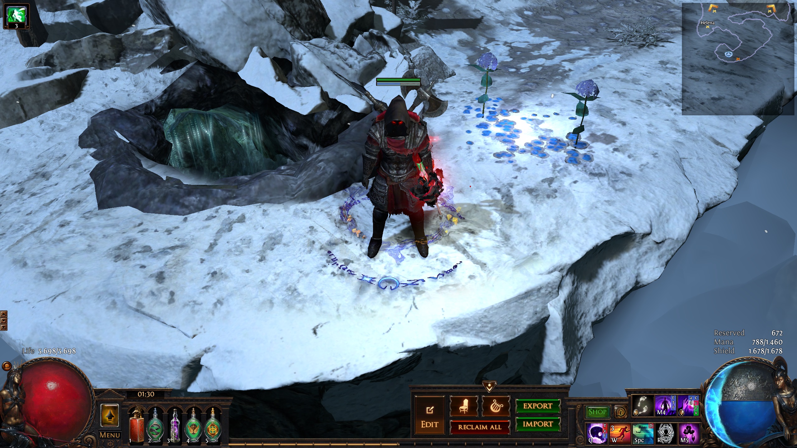 Hideout inspired by the secret mountain monastary of the Hashashin/League of Shadows from the Batman universe - Nanda Parbat. It has the hallucinogenic Hasha blue flowers from Batman Begins and the Lazarus pit from the Arrowverse. I used a couple of MTX like the Dragon portal and the mystic cave, but those can easily be replaced(the new Divine portal(which is free with the Twitch prime promotion)