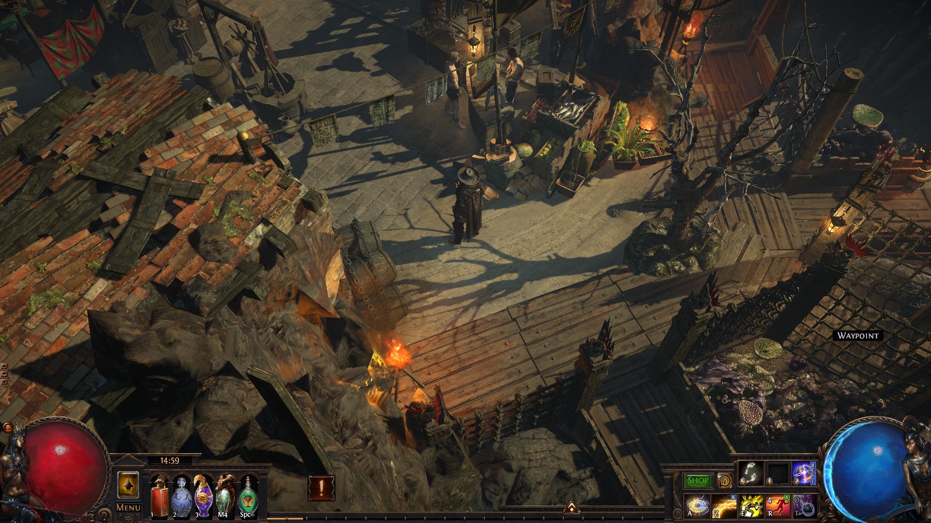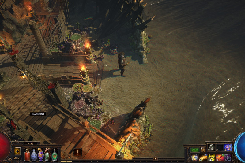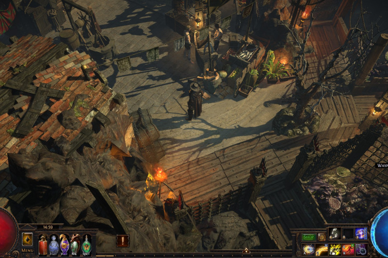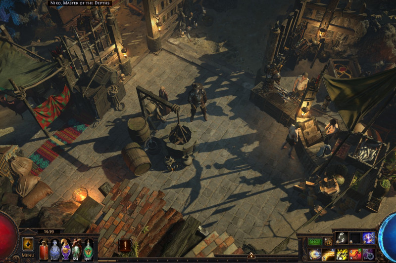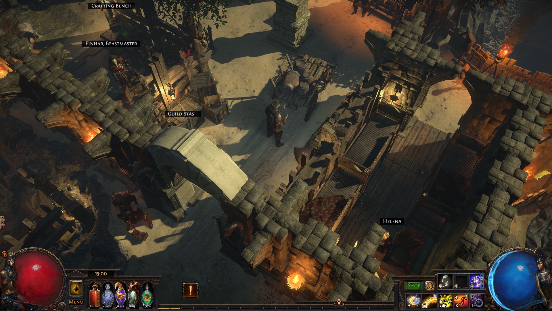 A small island that includes a port, a refuge for exiles with a marketplace, an uphill monastery with living quarters for the masters and the player, a banquet hall and a mystical garden with a device that is said to open the gate to other worlds...