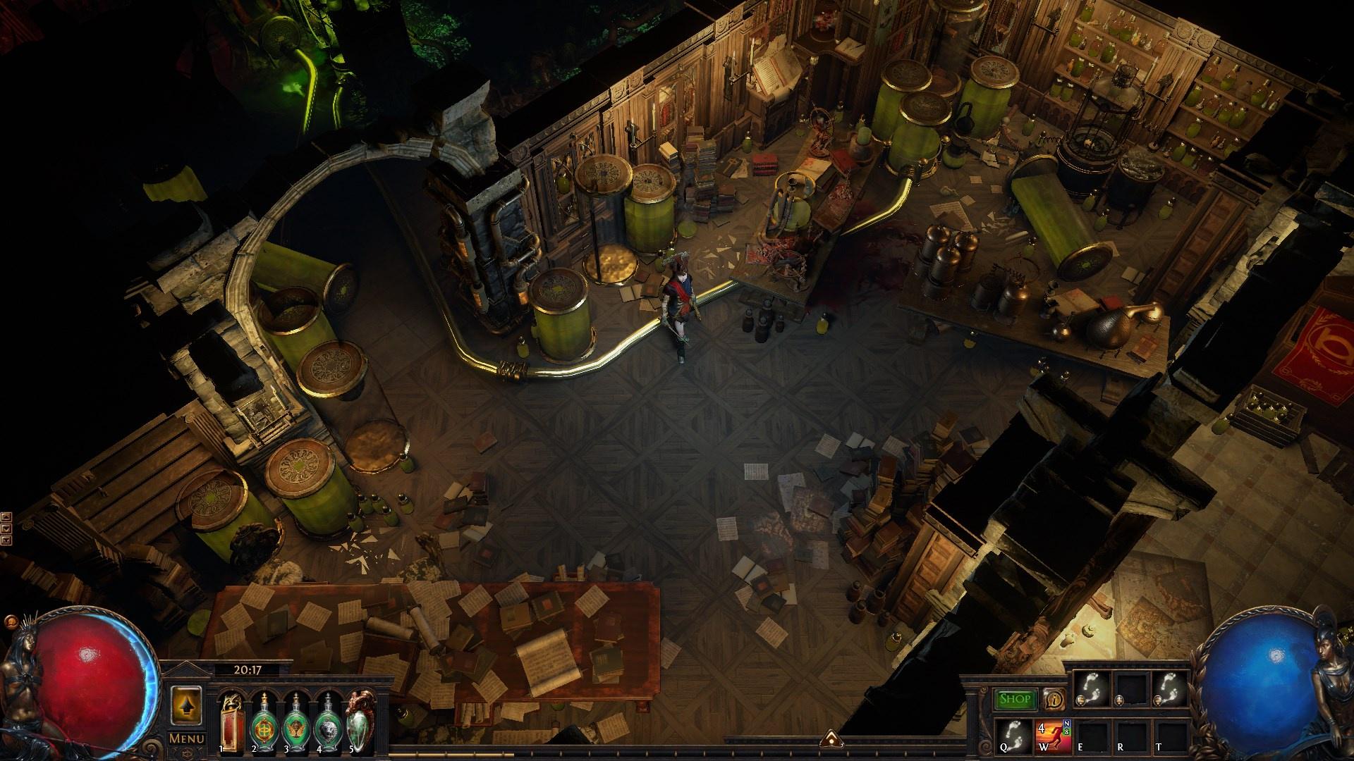 They researched the old books about herbs and reactions and began to pump the blood out of the pool to experiment with it and get better results. But it turned out that desecrating of the old Gruthul church in combination with the experiments started another ancient corruption to spread. A giant tree spreaded its roots through the roof in just one night. The results of mixing the elder blood and the ancient tree corruptions was beyond the young templar's expectations. The potions were so powerful that they literally could give people the god's power. Unfortunately, this power also took all of the person's lifeforce, turning him into a brainless zombie in just a month. The templar was prosecuted for the crimes against the upper class of Oriath and was executed shortly after it.