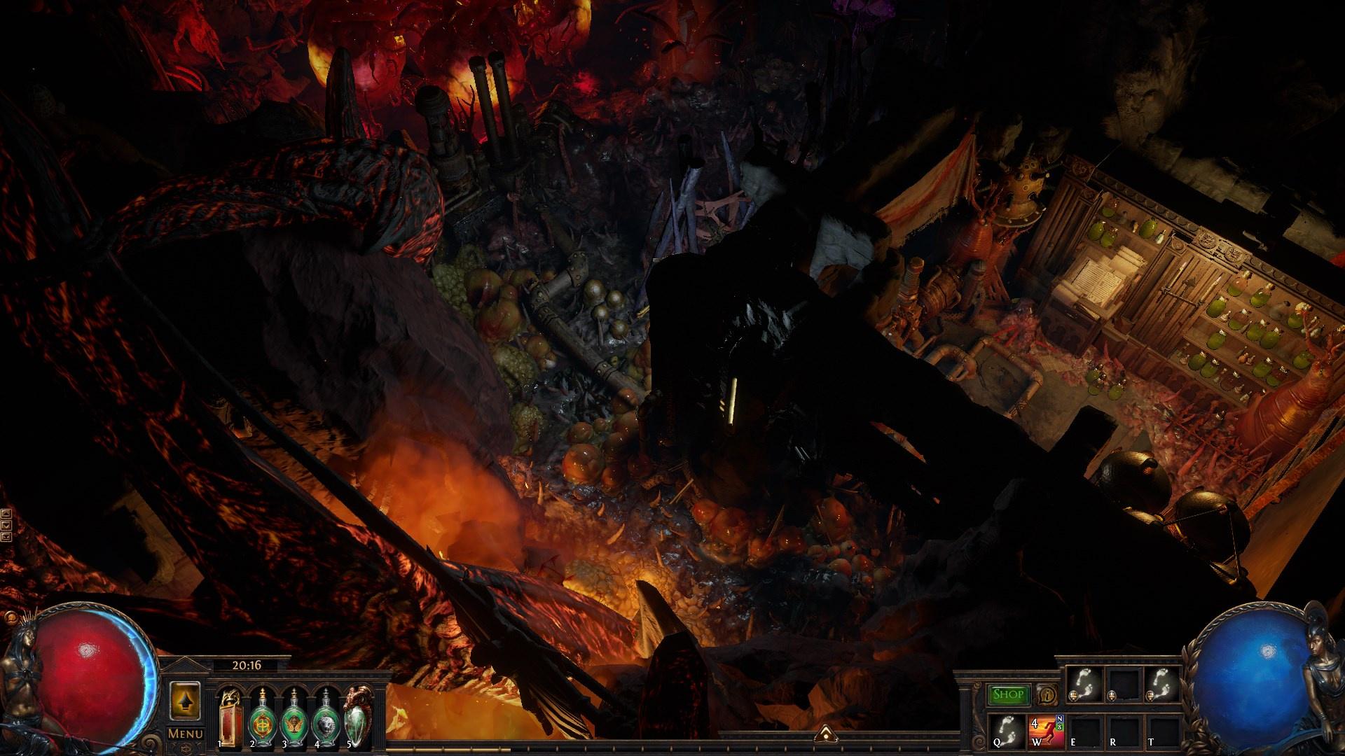 They researched the old books about herbs and reactions and began to pump the blood out of the pool to experiment with it and get better results. But it turned out that desecrating of the old Gruthul church in combination with the experiments started another ancient corruption to spread. A giant tree spreaded its roots through the roof in just one night. The results of mixing the elder blood and the ancient tree corruptions was beyond the young templar's expectations. The potions were so powerful that they literally could give people the god's power. Unfortunately, this power also took all of the person's lifeforce, turning him into a brainless zombie in just a month. The templar was prosecuted for the crimes against the upper class of Oriath and was executed shortly after it.