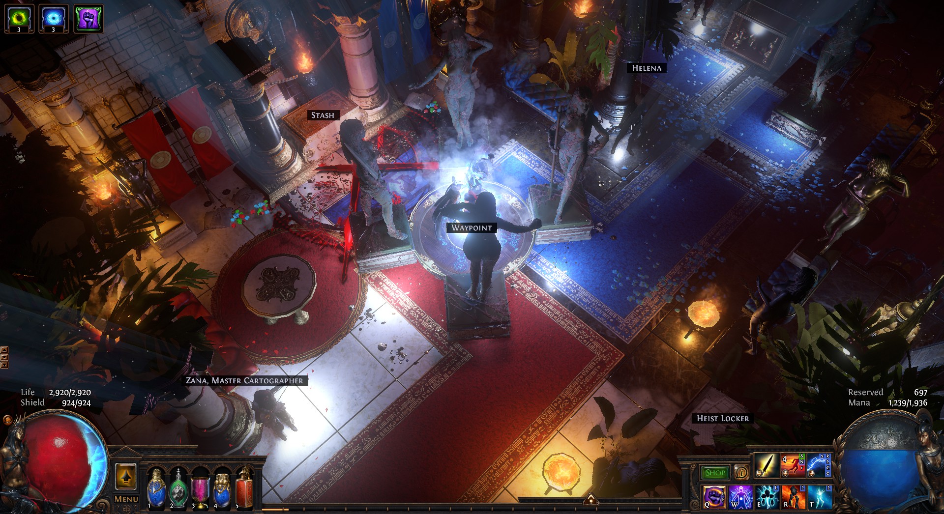 A well lit version of the Divided Hideout with Statues and Lighting effects using only In-Game Decorations, No MTX.