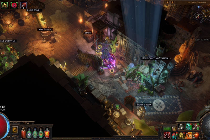 The hideout uses very few MTXes, a 'wide light beam' in window near Zana, a 'Oriath citizen' sitting by the fire and a 'Oriath fence' as the door for harbour, all of them being completely unnecesary for the end result.