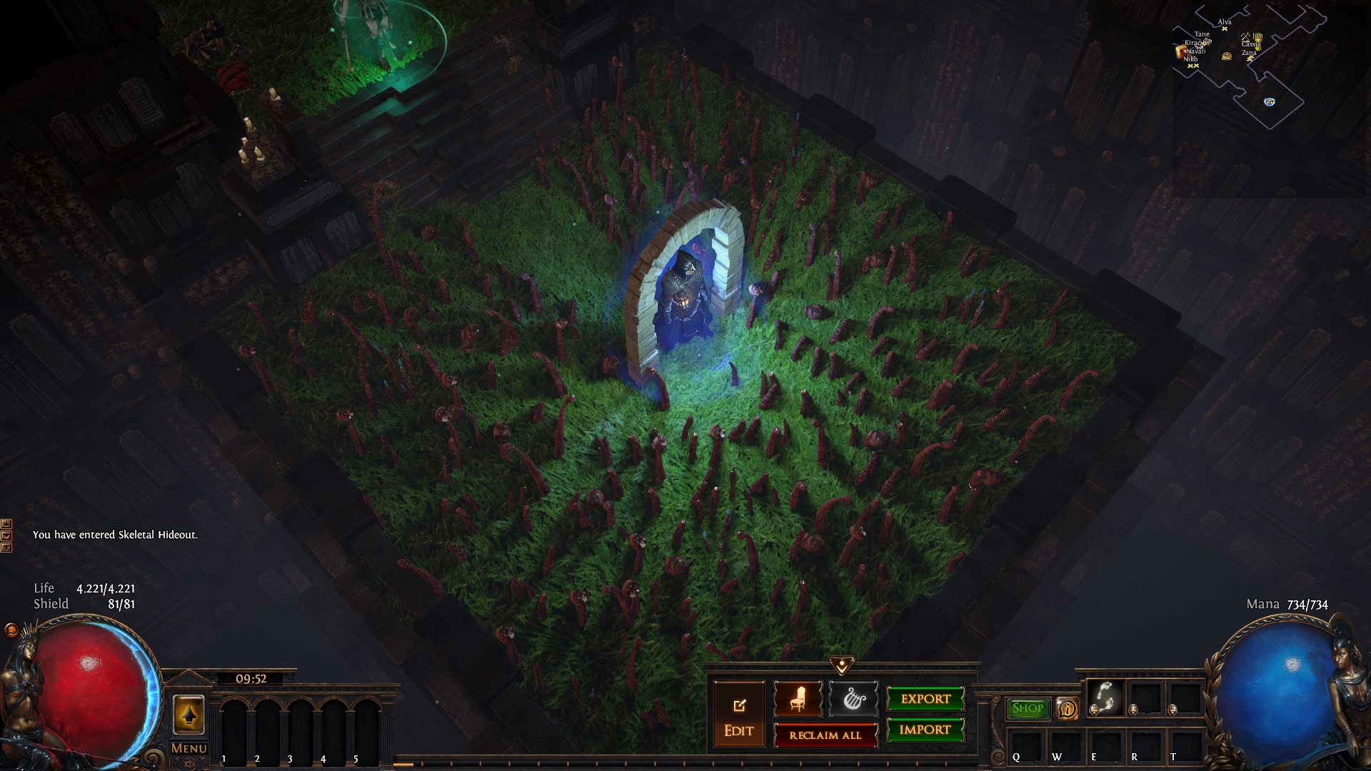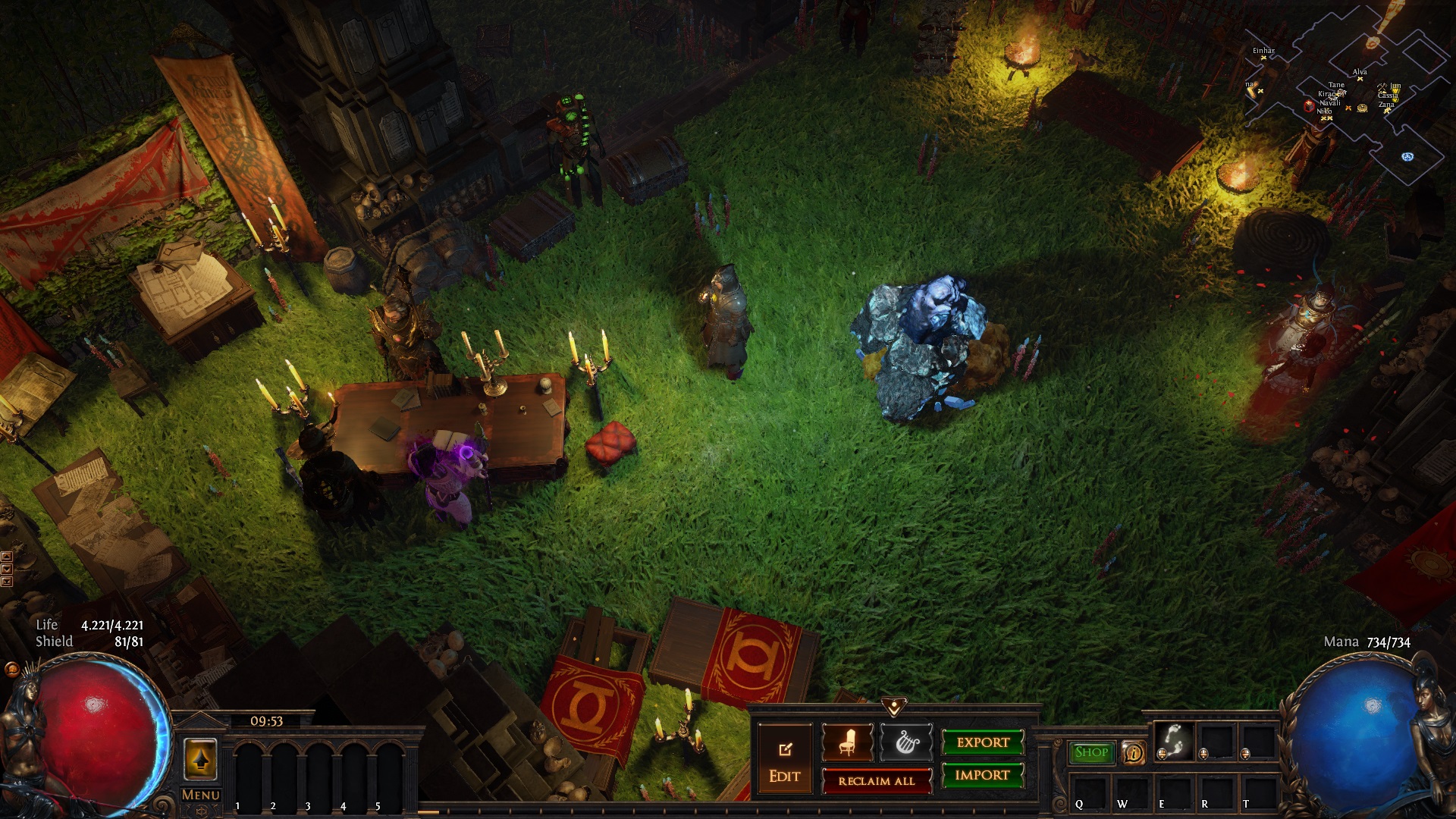Form follows function. I wanted to create a hideout with a little story, nice to look at and easy to use. All important masters are close to the map device and the workbench is close as well. You can ctrl+click on Tane to directly sell ur stuff, thats why he is next to the stash.