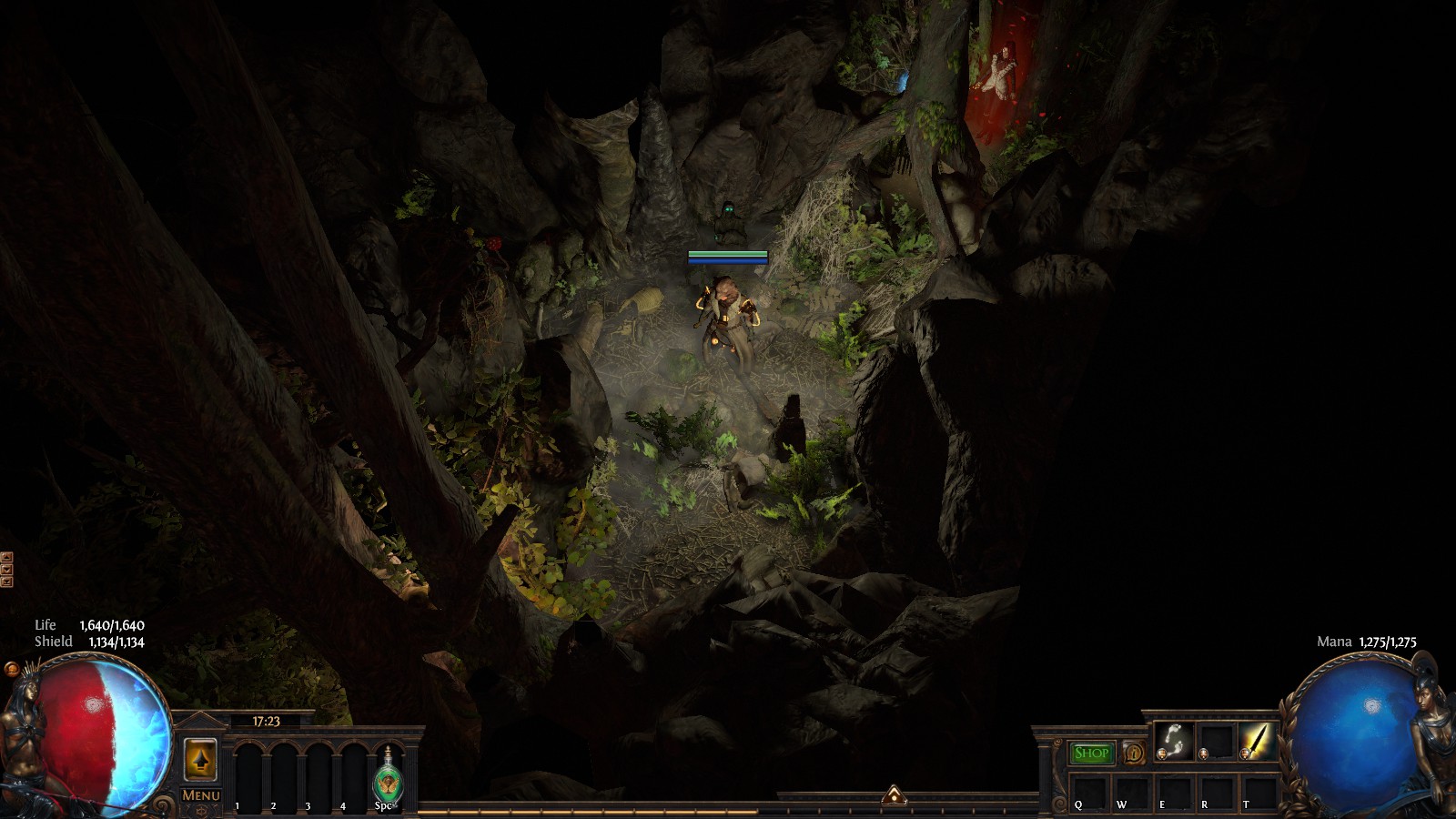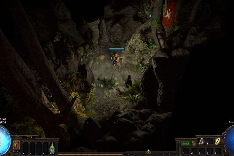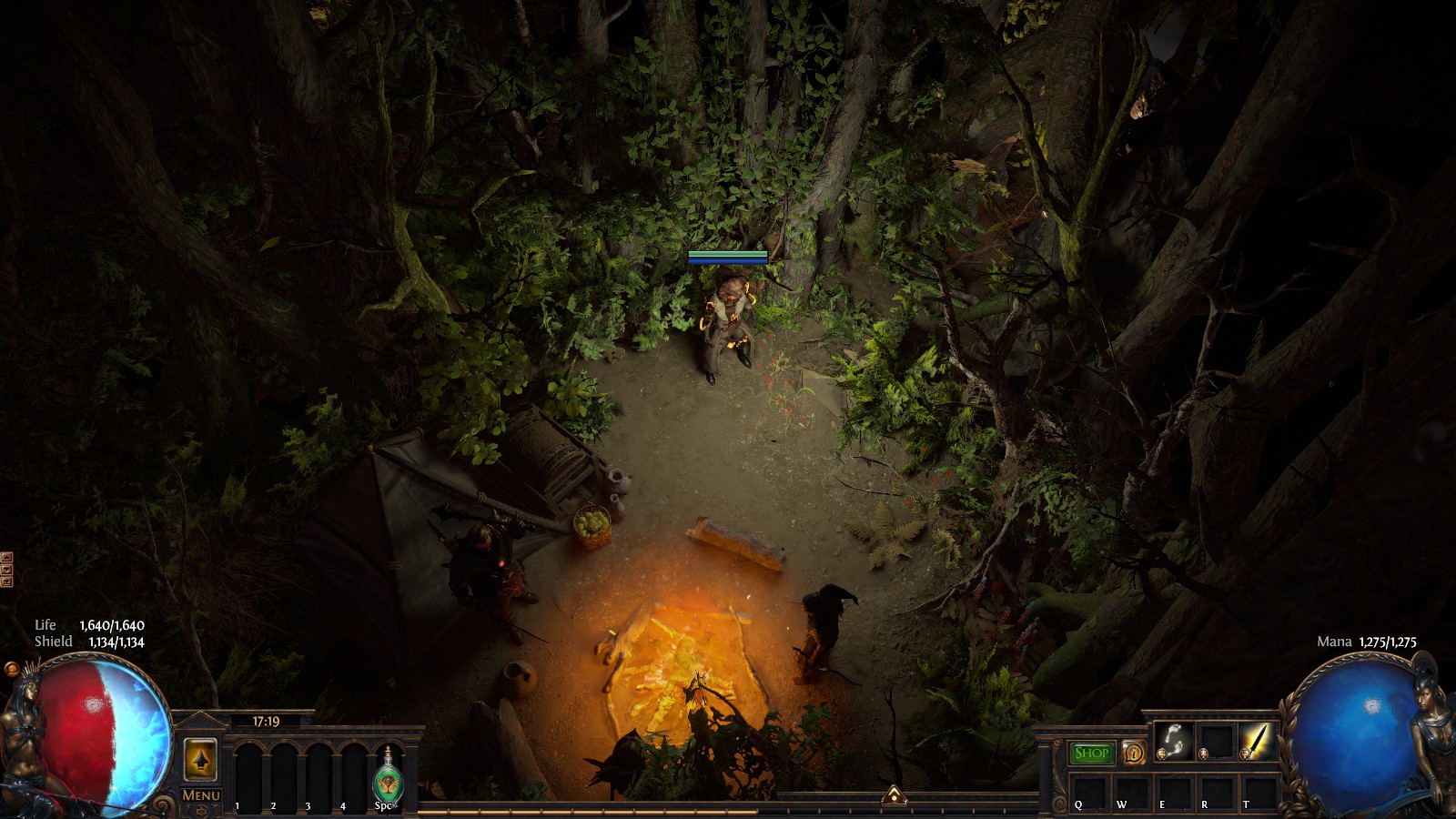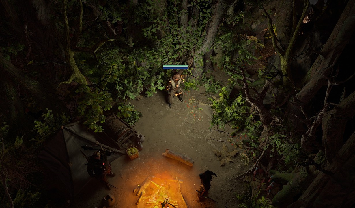 Featuring: campfire, secret passage between the trees, small cave and overgrown altar.