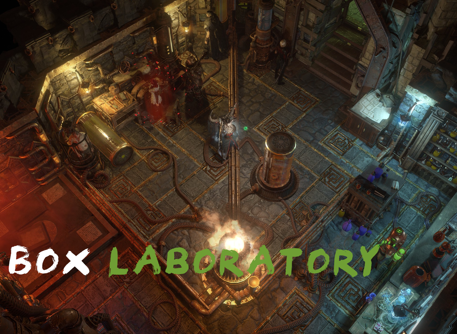 Box 2.8: A creepy Labratory with some masters in tanks.
