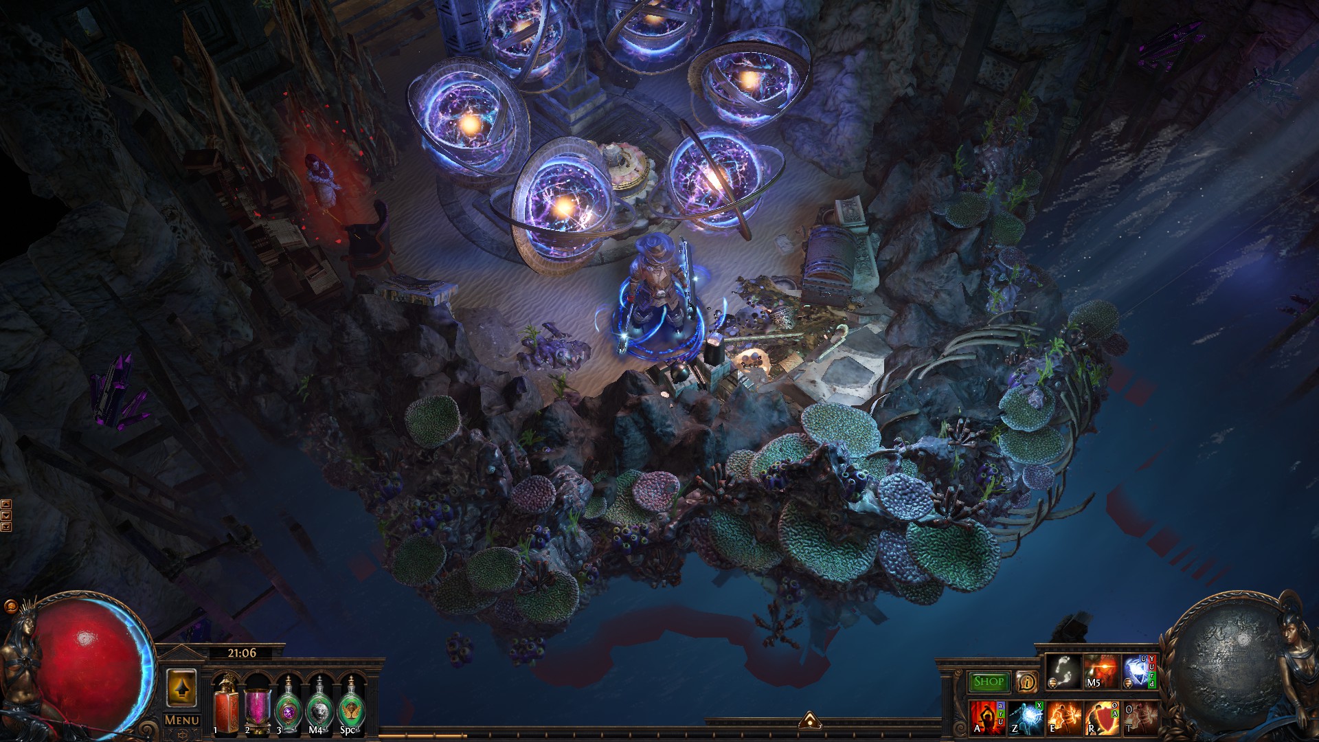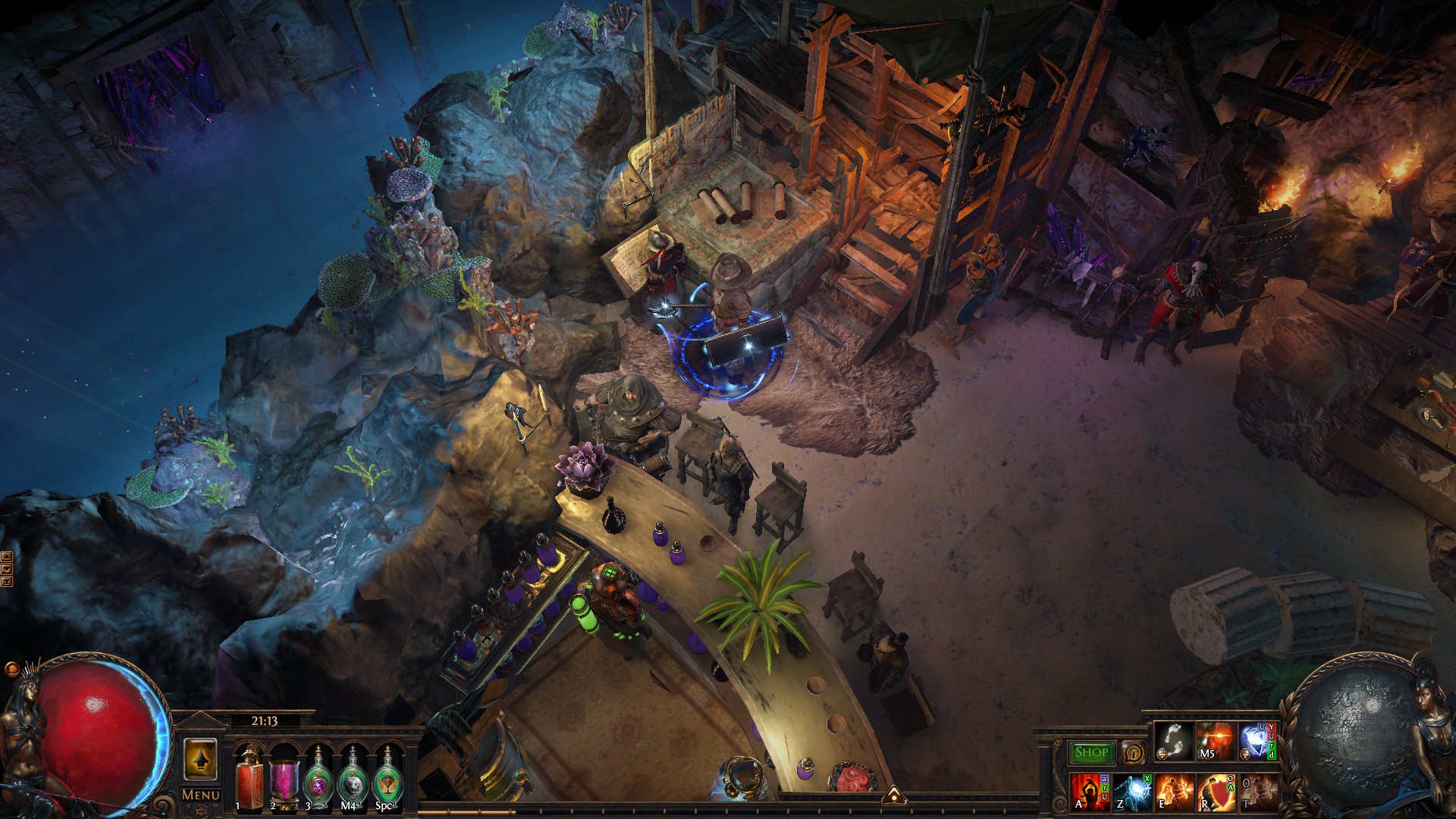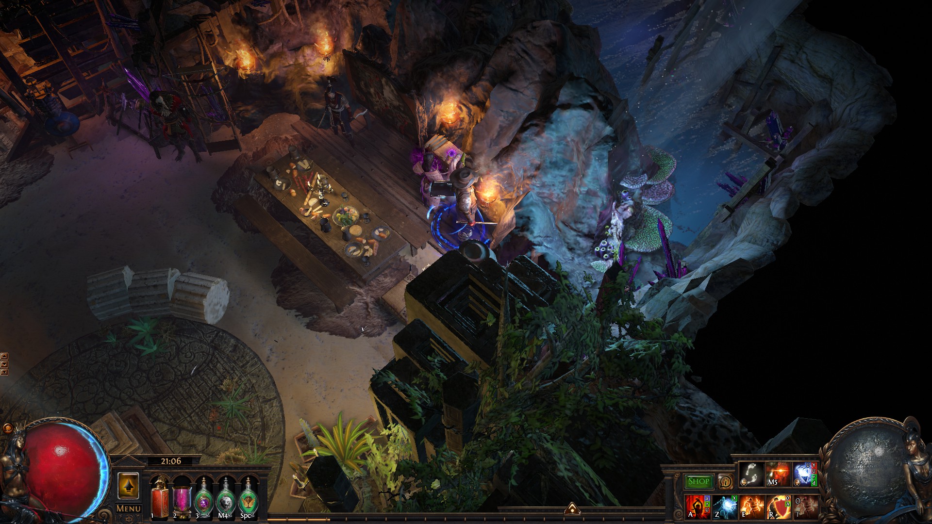 The remains of an abandoned temple in an ocean cave were found by our scouts. Of course, we took the liberty to make the place more comfortable, but keep in mind that it may end up flooded at a moment's notice. Feel free to make yourself at home until then!