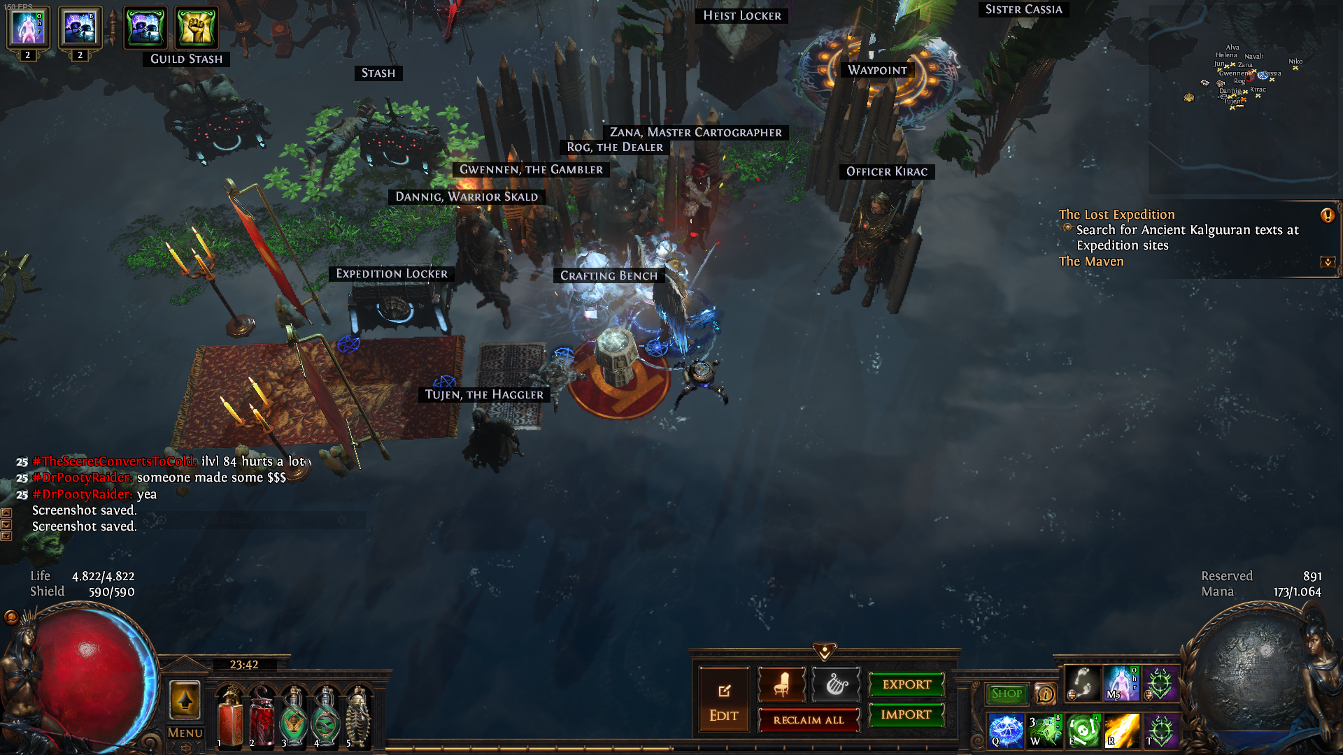 So since I have been grinding hard on my POE. I wanted to share my hideout with the community as I have heard some players say it's cozy. Why not share it RIGHT? here it is. Very cheap and affordable for everyone.