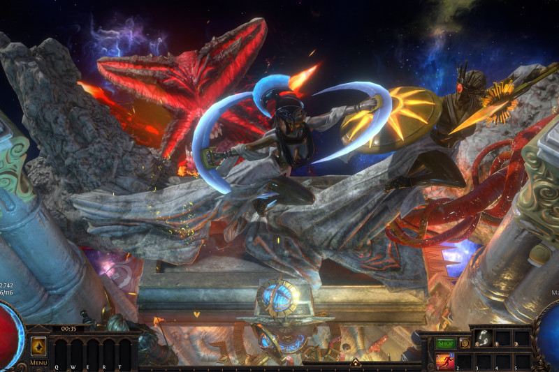 Her long-supressed envy and hatred for her own sister, the Moon Goddess Lunaris, had resulted in history's most brutal and treacherous battle at the Temple of the Stars. The ancient giant guardians of the Temple turns against each-other under the corrpution of Kitava's blood, and the Masters of Wraeclast summoned to repel the invasion. What is the final outcome?"