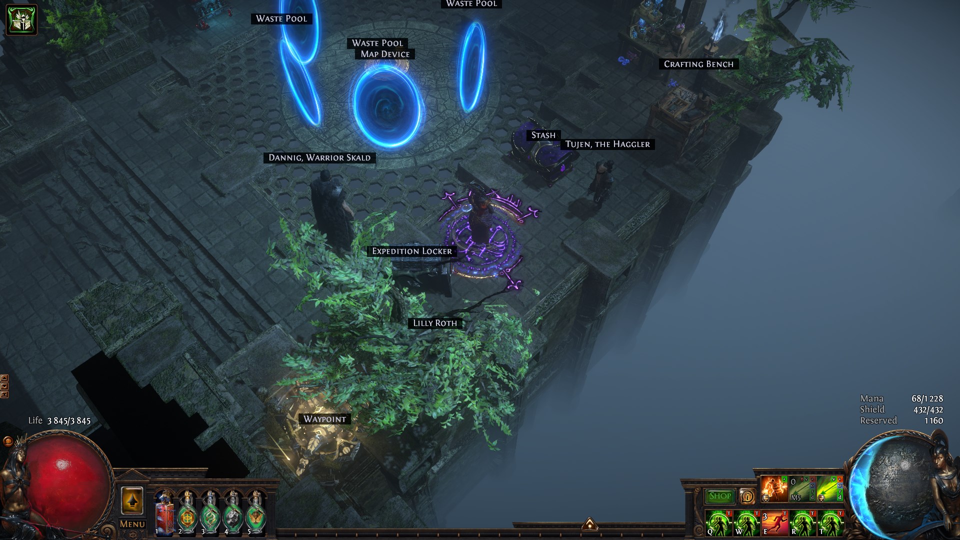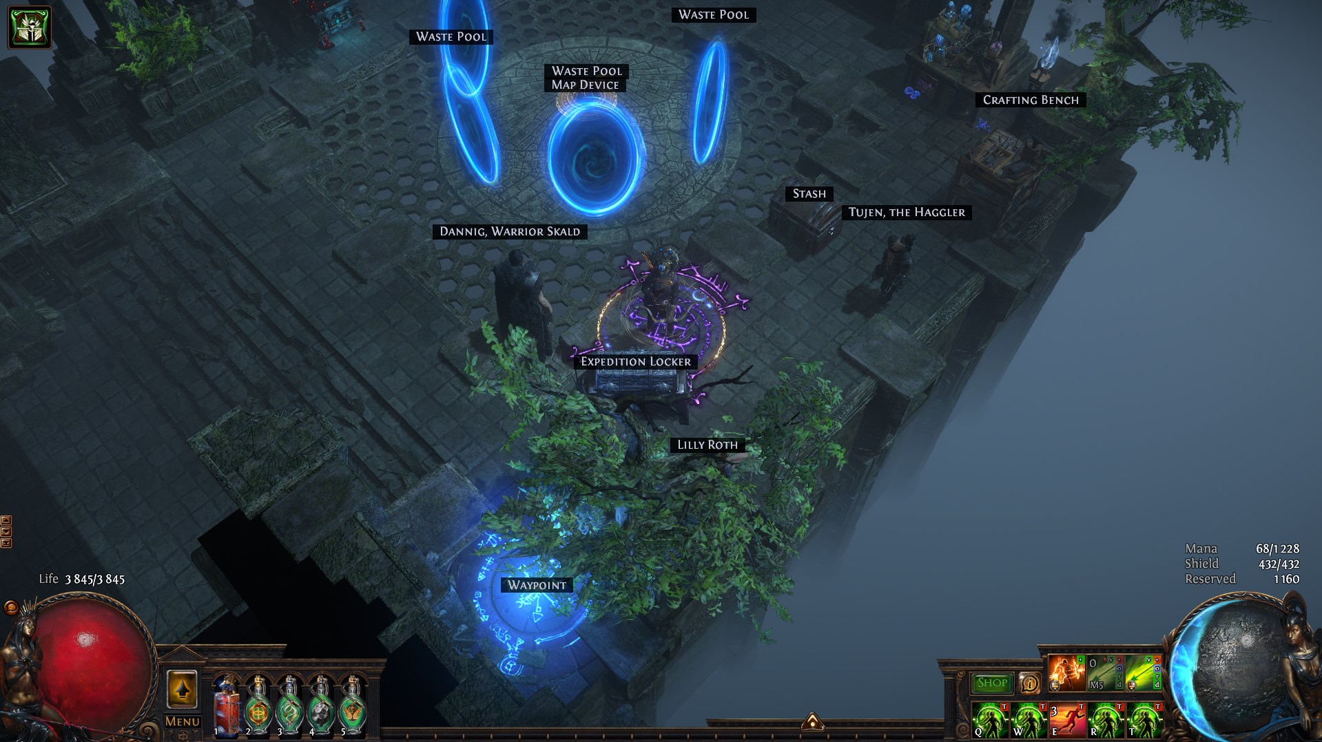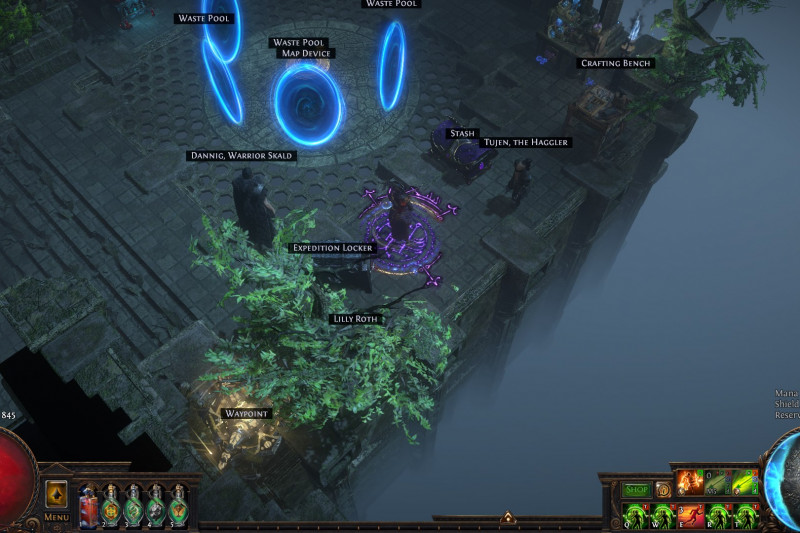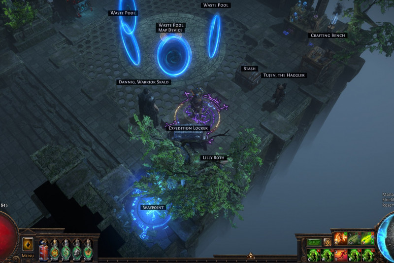 Convenient, minimalistic, not cramped, realistic, beautiful hideout for farming expedition or any other content. Takes into account the specifics of the game, such as the location of portals / distance between NPCs or the hideout scenery used. Took into account the character's appearance at the bottom of the Map Device ( quick use of stash or opening an expedition)