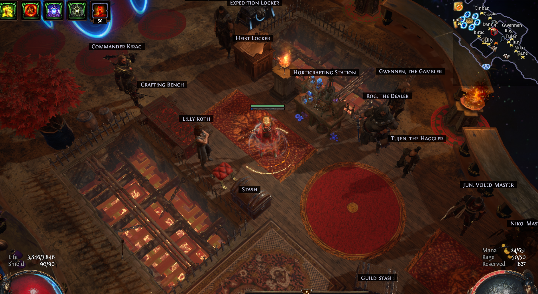 North-West wing: Celestial Waypoint, Mapping and Crafting with easy access to all vendors and chests.