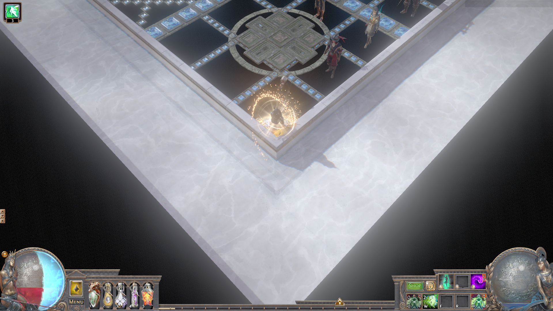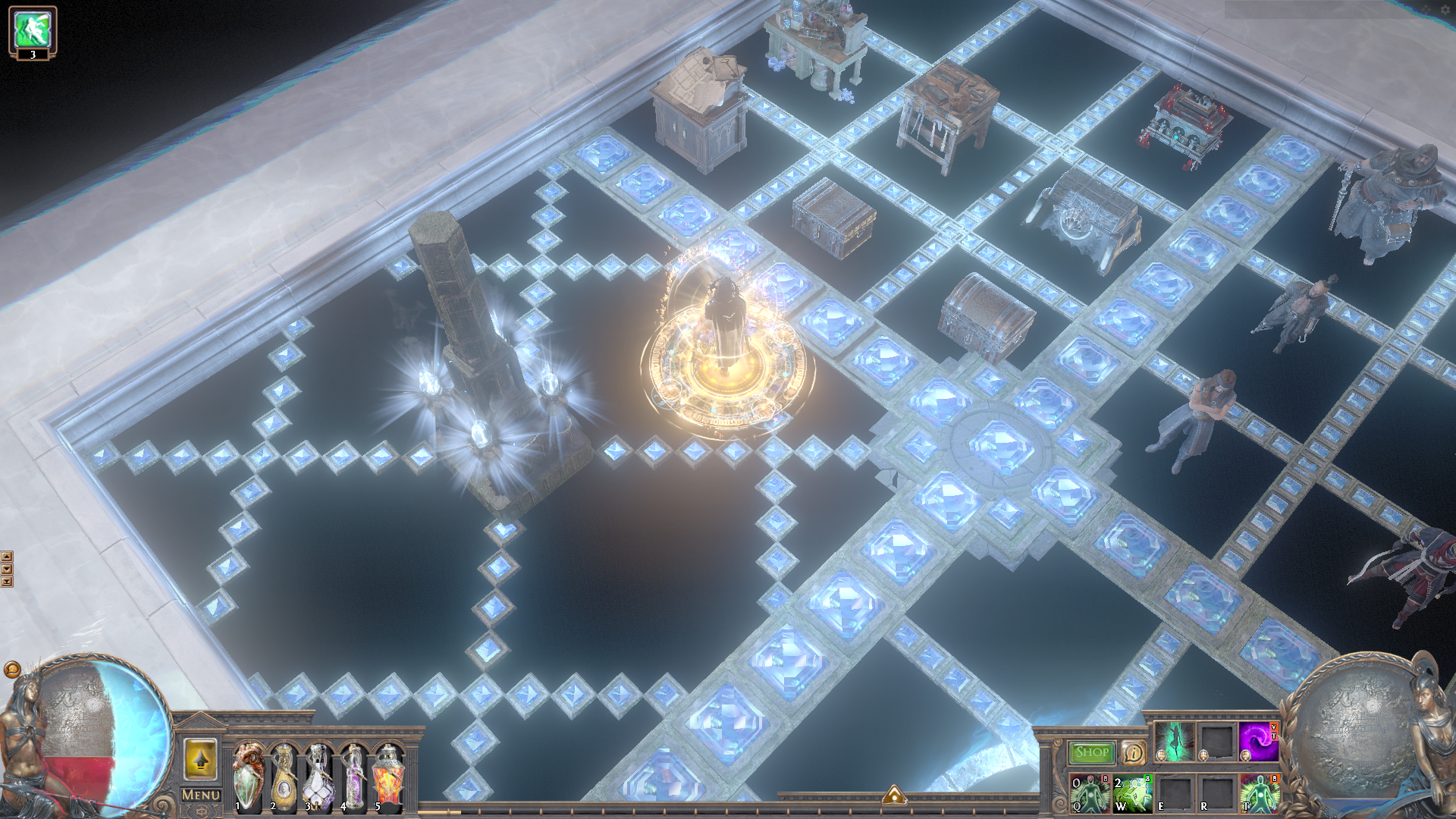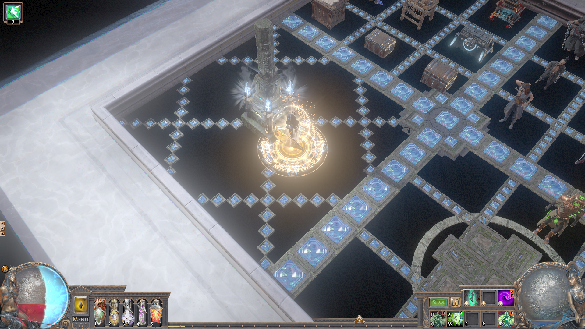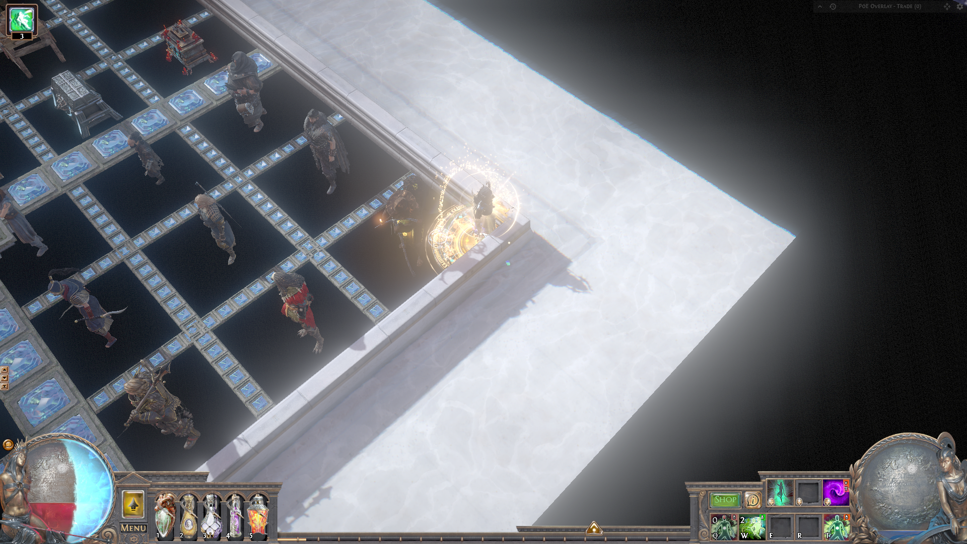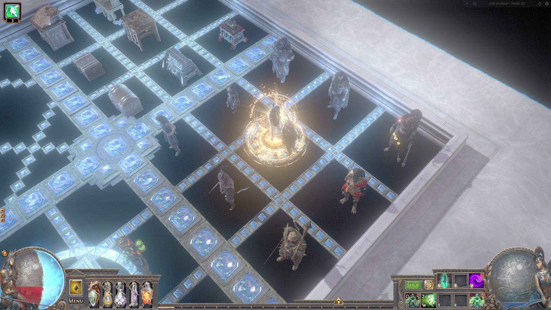 A quite small hideout for your daily trading, crafting and mapping business. The lights can be switched on and off up to you personal preference. The layout is great for mapping, trading and crafting because everything you need has its designated space and is easy and fast to find.