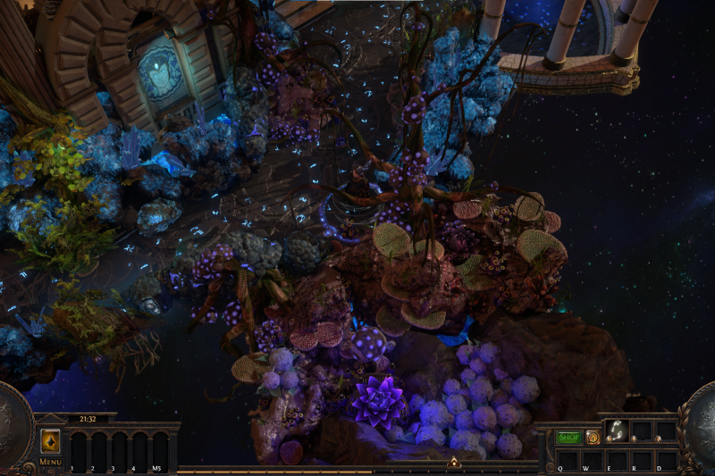 As the putrid forest grew stronger, fueled by corpses of slayed gods, decay spread and the world slowly became uninhabitable. The remainder of mankind found refuge in the last place untouched by the puple-glowing vegetation : the Celestial Temple of Duality. While some try to find a saving grace in books, or in gathering artifacts of the past though the Atlas, others pray for the help of the old gods. But in this tiny bastion of hope, humanity is starting to fall appart..
