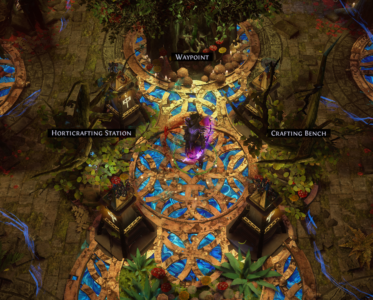 While the original purpose of the channels of liquid arcane magic is unknown, the map device at the newly discovered expedition site and edible vegitation made a comfy base of operations.