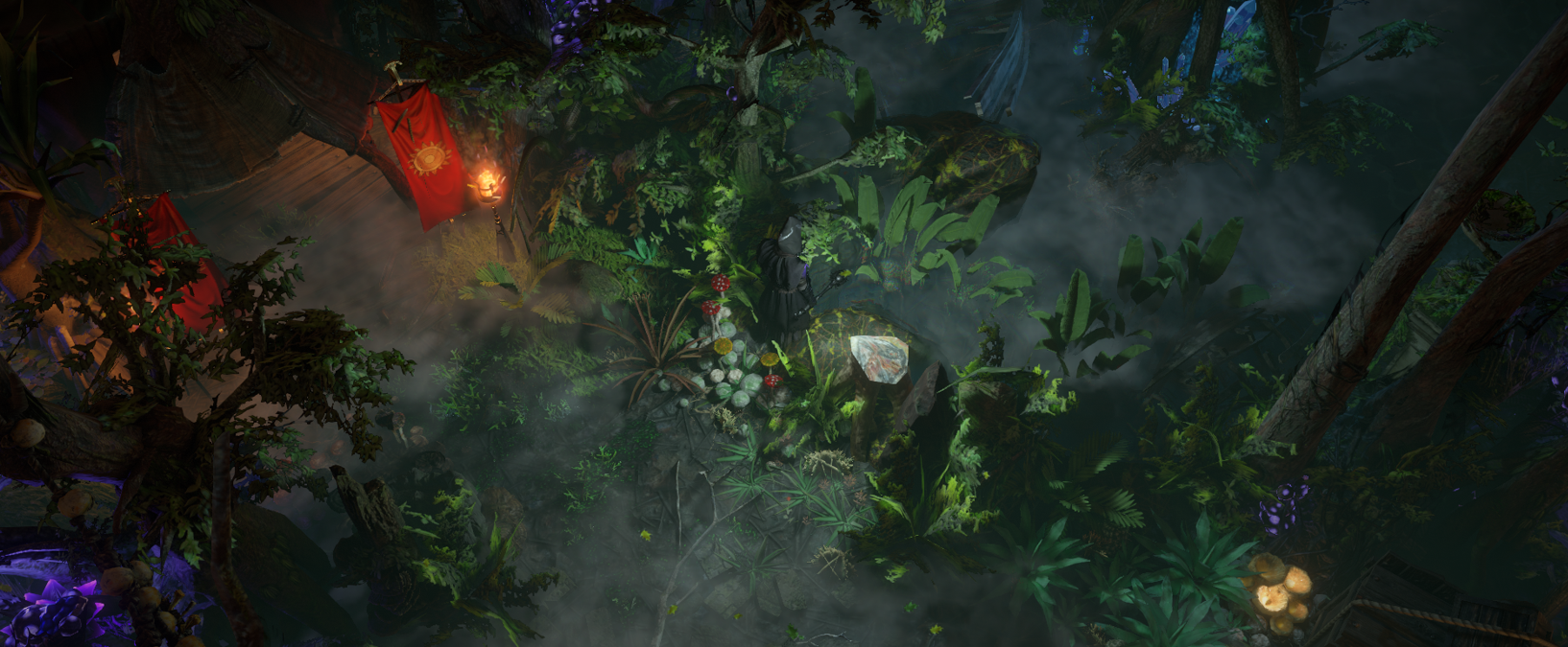 I was drawn by the Trippy Eye Portal effect and decided to create a mystical Woods Hideout around it. It was also perfect timing with the Affliction league theme. The center Piece works really well with that Portal effect, (others may vary).