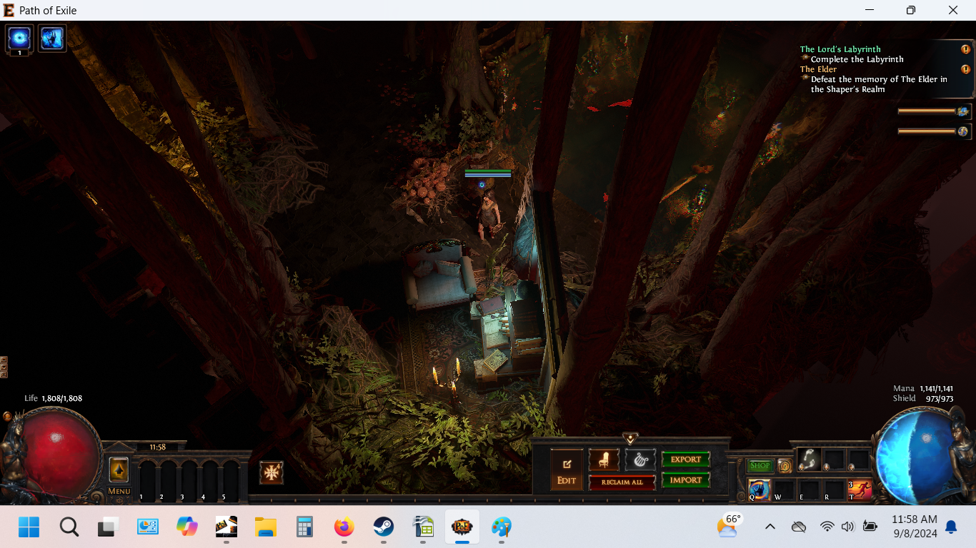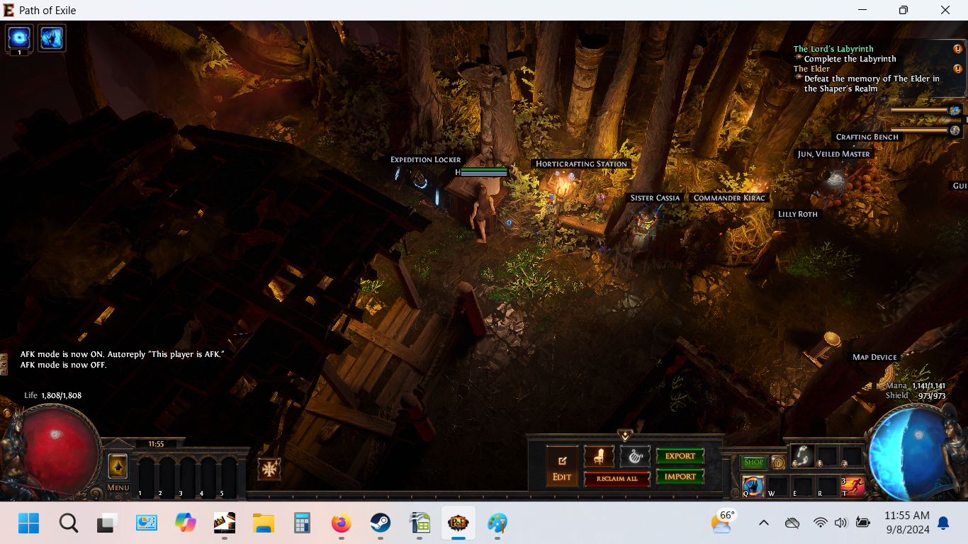 Baleful Hideout always makes me a bit baleful. In this effort, I was trying to find a way to make it not be so red - which is hard. But I ended up making the swampy hermitage offered here: there's a ramshackle shack for ambiance, a shrine to Gruthkul - she makes me so sad - and a little reading nook.