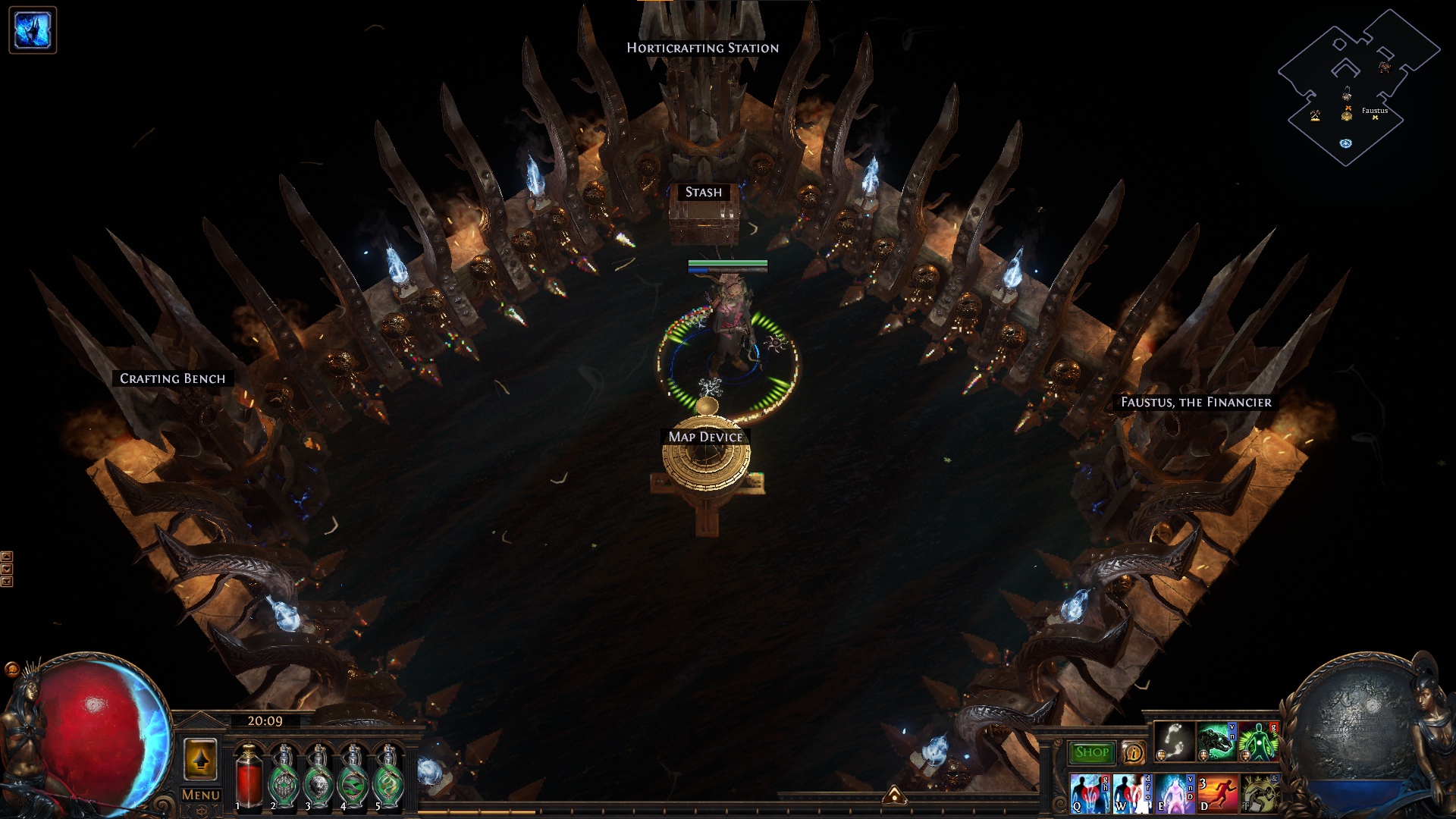 This is a minimalist hideout with only basic utilities: bench craft, horticraft, map device, stash and an NPC.