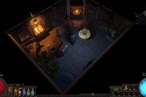 This is, for me, the ideal set up to run maps (Alch 'n go play style). The set up requires no movement what so ever once you're opening maps, coming back out, identifying and selling stuff to Doriyani and accessing your stash.