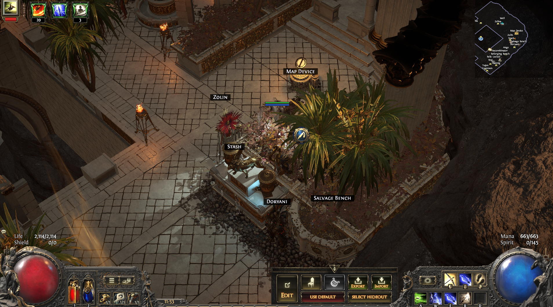 Efficient placement of stash, mystic seer, and map device.