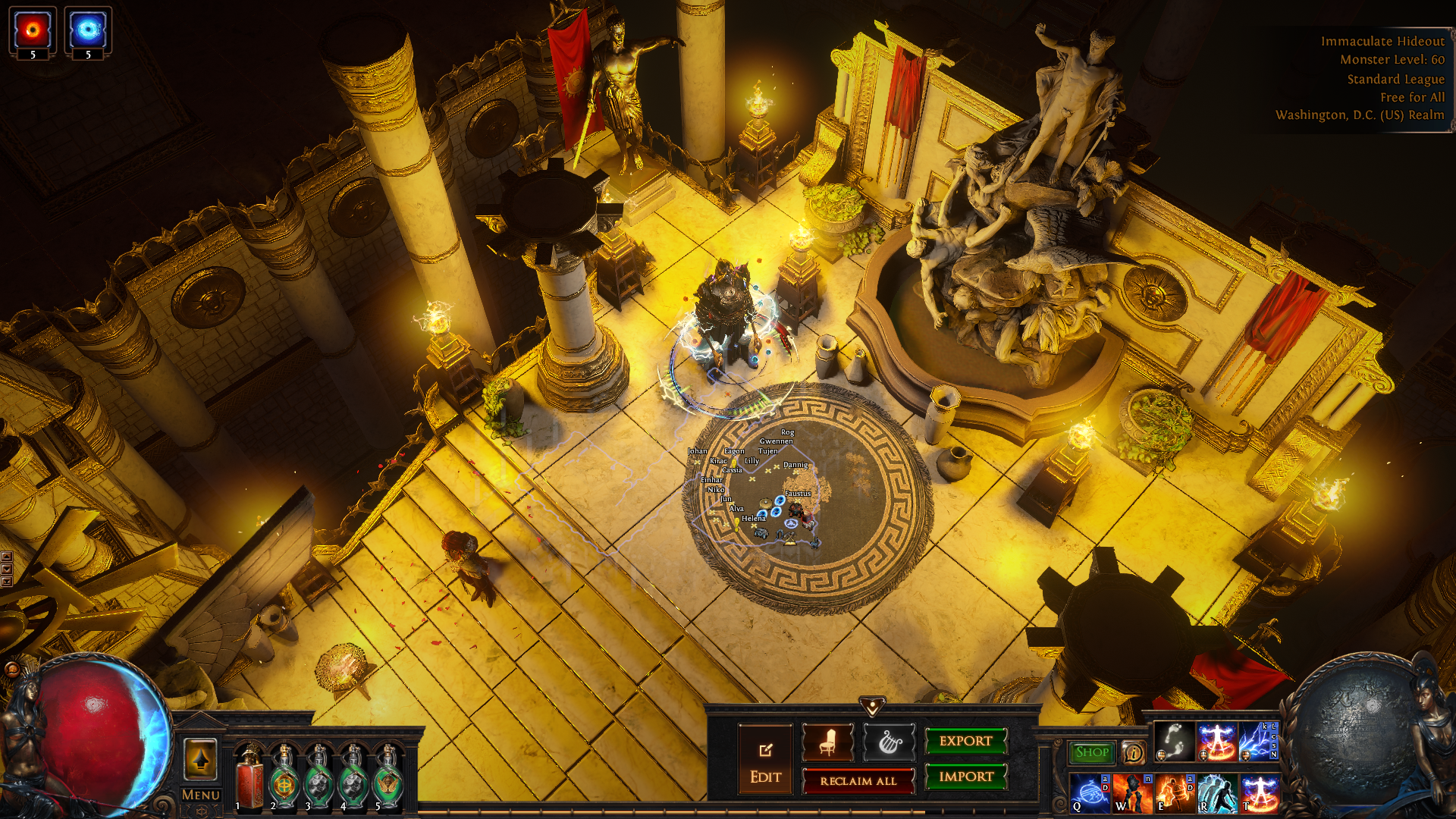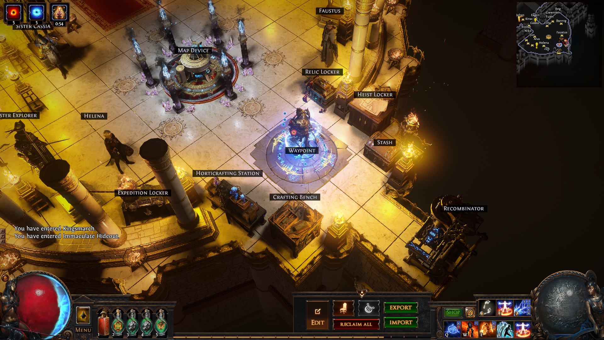 An enhanced version of the immaculate hideout that doesn't uses MTX, with improved lighting and decorations, where all the useful NPCs and utilities such as the crafting bench, the stash, the waypoint and the map device have been placed in the same zone for quicker navigation. For those who want an improvement on the base immaculate hideout while preserving its greek temple aesthetics.