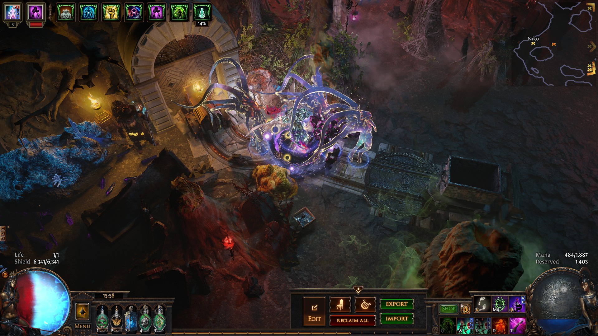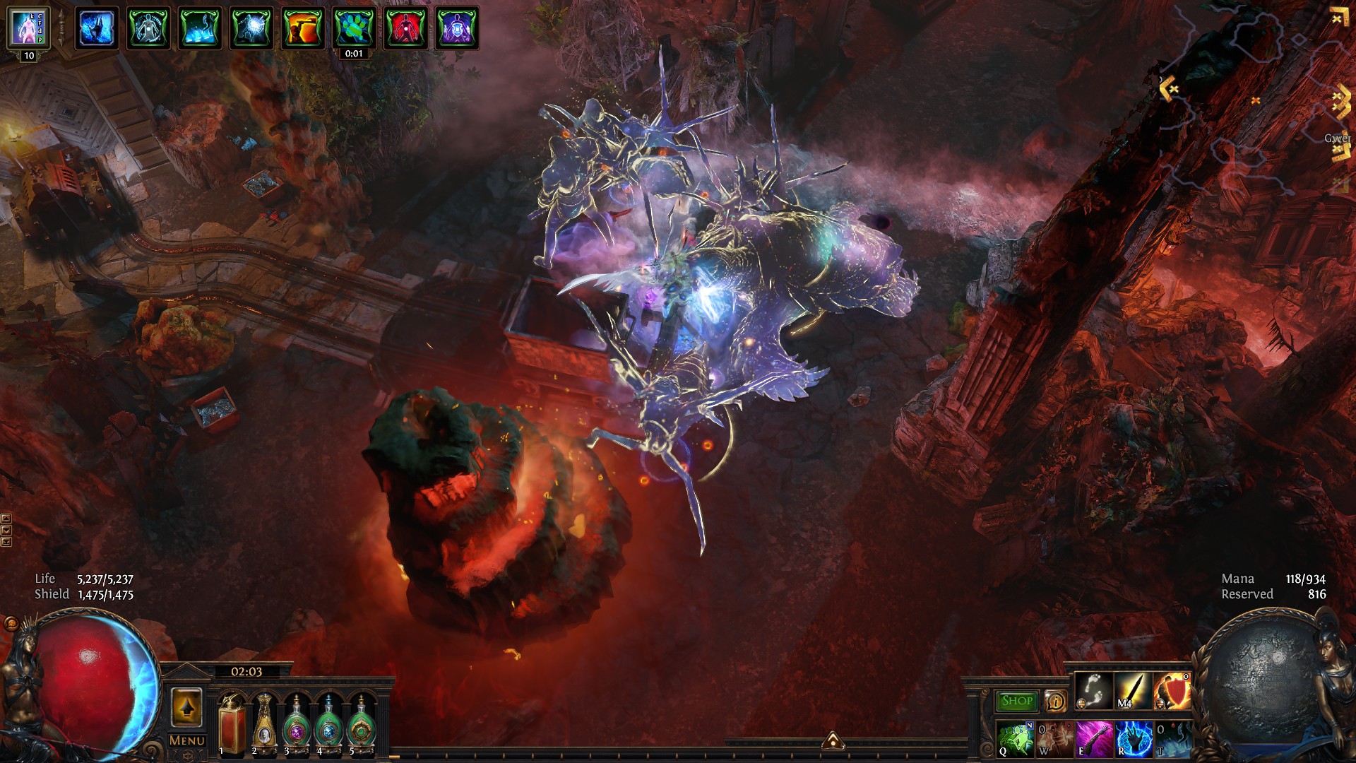 The next morning I returned to Oriath. Upon exiting the portal and gazing at the sky, it looked different. Like a primordial tempest of purple and pink hues swirling in the sky. The inhabitants that I had come fond of, misshapen. Hands where none should exist.